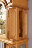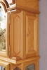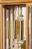 Handmade German Grandfather Clock of solid oak natural laquered. Inside there are 6 glass shelves and a mirror on the back board. Window with facet cut. Also available in cherry and nut tree. Original Black Forest clockwork with 3 melodies (can be deactivated at night). Front windows with facet cut.