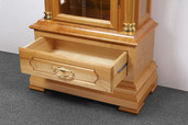 Handmade German Grandfather Clock of solid cherry tree. Original Black Forest clockwork with 3 melodies (can be deactivated at night). Columns with brass caps. Front window with facet cut. The clock is also available in nut tree. The clock is equipped with a drawer comprising a secret compartment.