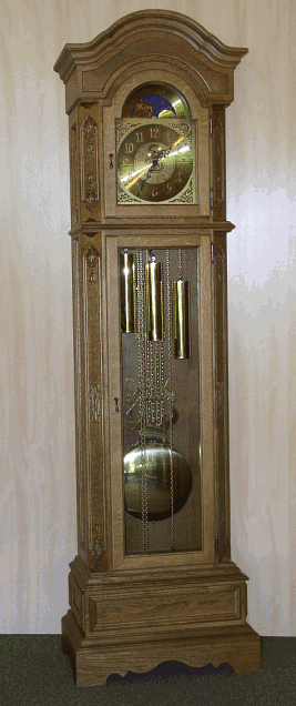 You would like to hear how the clock sounds? Please click here to play the stroke of the grandfather clock (approx. 300 kb).