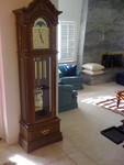 Greetings Manuel! I've attached a picture of this most beautiful work of master craftsmanship in it's new home. It has exceeded my expectations in every way. As soon as it was delivered I opened the crate, placed it and carefully removed the tape and packaging. After installing the weights and pendulum, it has functioned to the minute since yesterday when I received it. I cannot tell you how thankful and pleased I am with this clock. I love the faceting on the glass, especially around the face. The way it curves is gorgeous! I tell you, there is not a nicer grandfather clock in the area. I'm ecstatic! Thank you again very much for putting your efforts into this amazing piece. I shall treasure it for the rest of my life. One day, I shall inquire about furniture. I wish you the very best and shall contact you again some time. Your grateful friend, Keith Gress